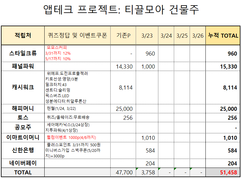앞으로 좀 더 다양하고 유용한 새로운 앱테크들도 진행해 보도록 하겠습니다.
